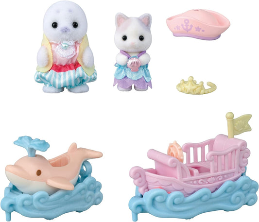 2024 Sylvanian Families Amusement Park Seal and Latte Cat baby in Boat Dolphin Ride