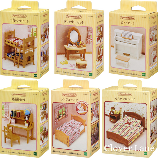 Sylvanian Families Bunk Single Semi Double Bed Study Desk Dressing Table Piano Bedroom Furniture Doll House Accessories Miniature Toys